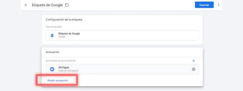 En resumida cuenta lo que estaremos realizando en Google Tag Manager es crear una variable y aplicarla como Excepción a la Etiqueta principal de Google.